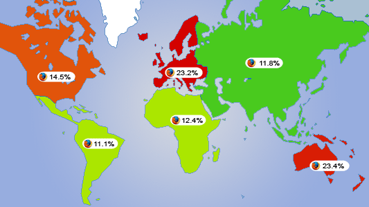 حقيقتا إن عدد مستعملي الفاير فوكس في أسيا ووطننا العربي ولله الحمد في تزايد سواءا إستعملوه من خلال اللينوكس أو من خلال ويندوز … خاصة لما يملك من ميزات لم يكن الأكسبلورر حق مايكروسوفت يملكها إﻻ في نسخته الأخيرة … وخاصة مسألة الــ Tabs الذي تريحك في العمل والتصفح مع عدة مواقع في نفس الوقت + إضافات أخرى كثيرة جدا أنت تتحكم فيها بشكل كامل وليس المتصفح …