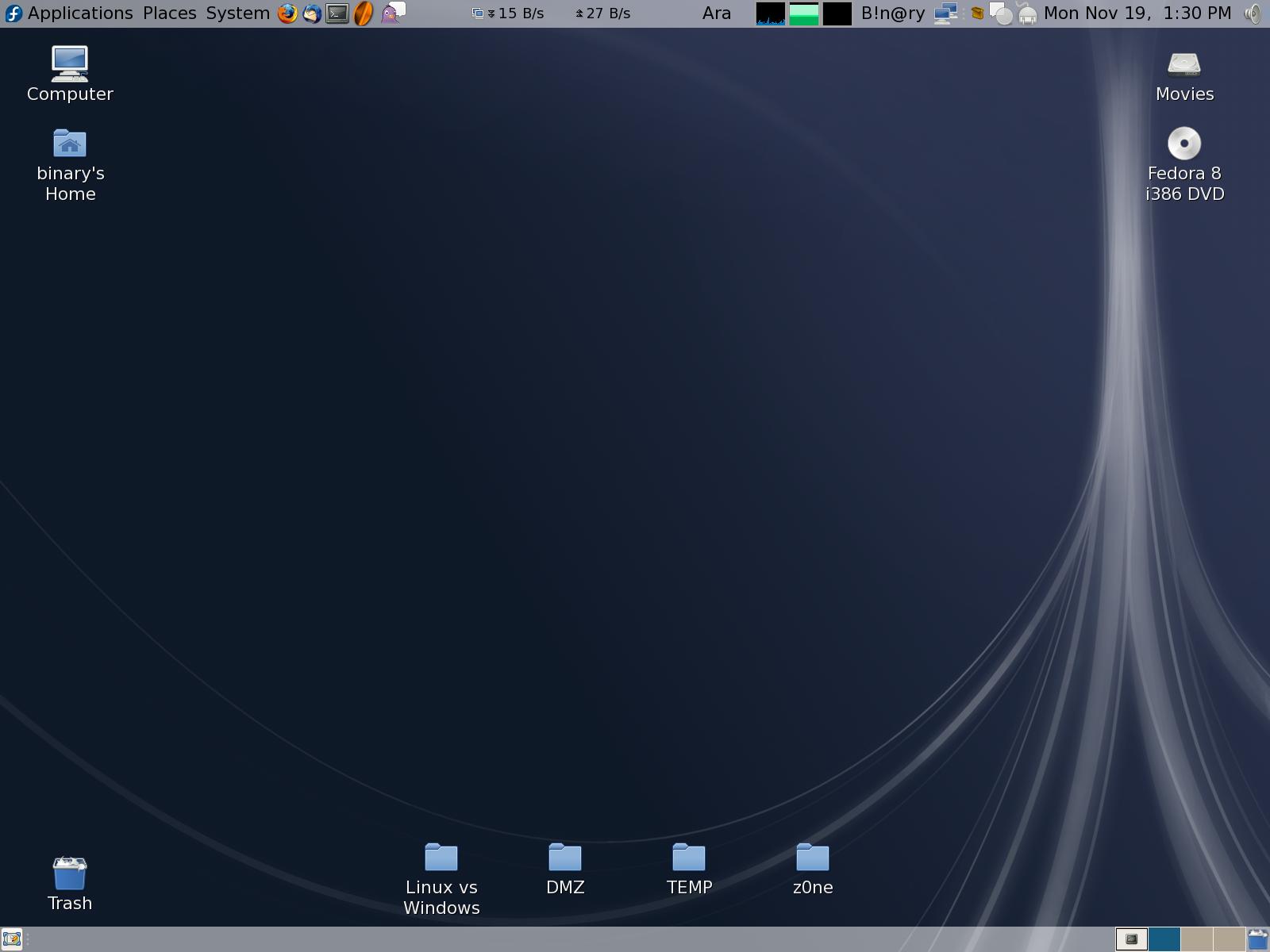 بعد غياب أكثر من سنة ونصف أعود مجدداً الى توزيعتي الحبيبة التي أنطلقت منها لعالم لينوكس Fedora … وتركتها عندما كانت Fedora 4 والحين أعود وهي Fedora 8 … قمت بتنصيب جميع البرامج التي أحتاجها وتم تضبيط للحين كل شيء باقي عندي فقط الـ Virtual Box وقريباً أنتهي منه بإذن الله … التوزيعة بأمانة قوية للغاية وأصبحت جميلة أيضاً أكثر من السابق ﻻ أعرف لماذا ربما ﻷني عدت لها بعد زمن ولكنها جميلة جداً … وأيضاً قوية من حيث الثبات كعادتها :) أنصح بإستخدامها أو على الأقل تجربتها … وسأذكر المزيد من دون شك حولها كلما سنحت لي الفرصة …