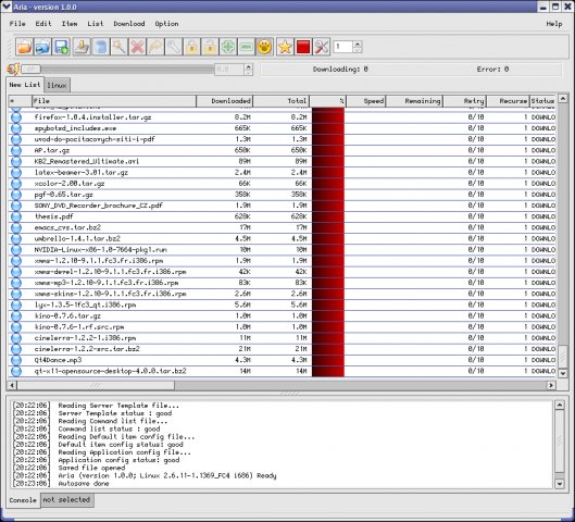 Aria is a download tool for UNIX similar to Reget or GetRight. It downloads files from Internet via HTTP/HTTPS or FTP. The transfer can be paused, resumed, queued and saved. It has very friendly GTK based GUI, and useful log consoles.