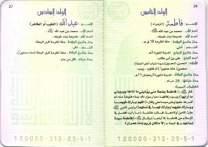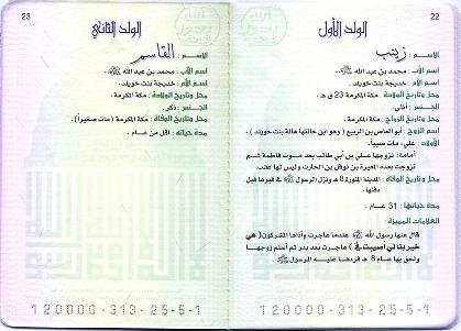 البطاقة العائلية للرسول (صلى الله عليه وسلم)