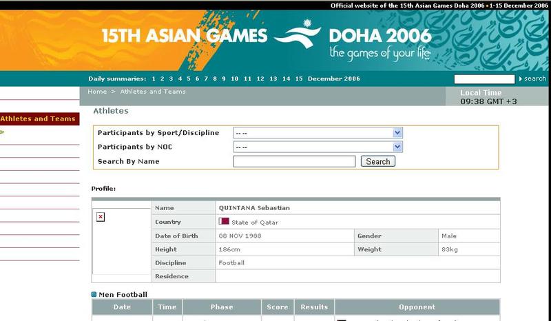وبعد كل هذا كان لابد من الدفاع عن اسم العراق بكشف الحقائق للجمهور الرياضي سواء العراقي او العربي ولكي يعلم الجمهور ان الدولارات لن تفيد ابدا امام الحق والذي هو بالتأكيد برعاية الله سبحانه وتعالى وعلى بركة الله بدأنا الحرب ايضا ولكن دفاعا عن اسم العراق دون تجريح او مساس بأي احد وقررنا نشر فضائح أبن همام والأتحاد القطري علنا امام الجميع لكي يعلم الجميع من هم اسود العراق بعد ان وضحنا بعض الحقائق عن ايميرسون واحتفاضنا بأشياء كثيرة ايضا نعود اليوم لننشر لكم موضوعا آخر لا يقل عن قضية ايميرسون وهو التزوير العلني للاعب المنتخب القطري سيبستيان سوريا وهو منقول من موقعهم هم وهو موقع اسياد الدوحة التزوير بتاريخ الولادة والتجنيس لكي يمثل قطر دوليا متناسين هناك الكثير من المواهب القديرة التي تمتلكها قطر لتمثيلها دوليا لانود الخوض بتفاصيل كثيرة ولكن نود ان نعرض لكم شيئا بسيطا جدا عن هذا التزوير والذي سوف يعرض لنا عدة اسئلة منها: