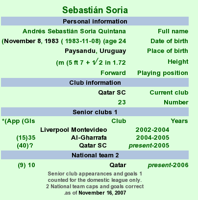 Andrés Sebastián Soria Quintana, known as Sebastián Soria (Arabic: سباستيان سوريا, born November 8, 1983 in Paysandu, Uruguay) is a Uruguayan – Qatari footballer.