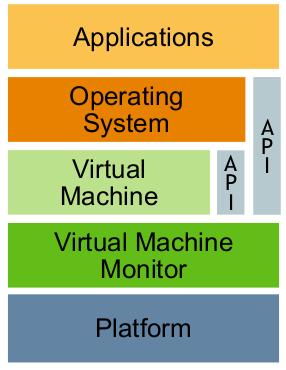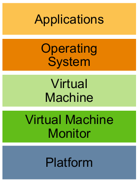 وهي فصل نظام التشغيل عن العتاد الذي يعمل عليه، بحيث يصبح النظام التشغيلي يعمل في بيئة تخيلية وكأنها حاسوب منفصل. هذه التقنية تتيح لنا أولاً مشاركة الموارد/العتاد الحقيقية وثانياً تشغيل أكثر من نظام تشغيل على نفس الموارد/العتاد وبنفس اللحظة.