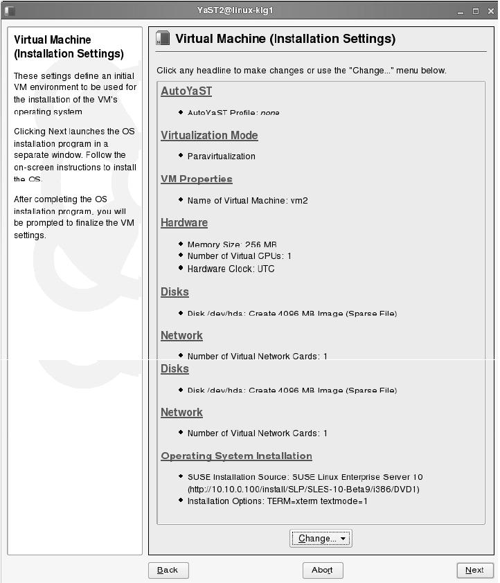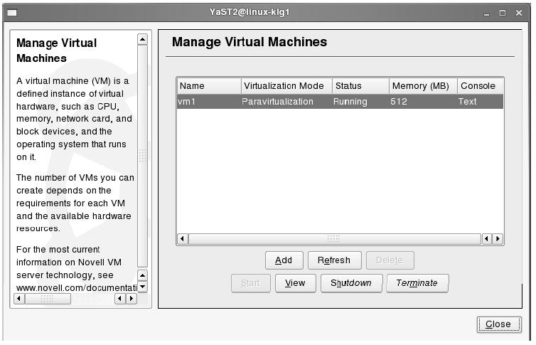 yast2-vm: تحتوي على برنامج لإدارة الدومينات من خلال الواجهة الرسومية.