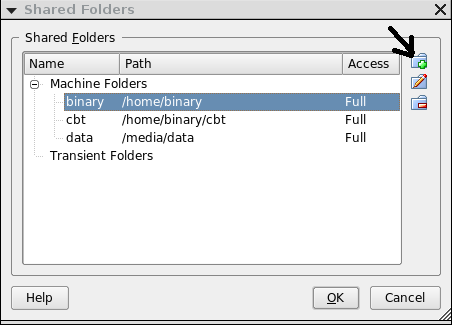 الآن نريد إضافة مجلد موجود على النظام الأصلي لكي نستطيع أن نعمل Access عليه من خلال النظام الذي يعمل بداخل VirtualBox. إذن قم بلأضغط على الأيقونة التي عليها إشارة + باللون الأخضر كما في الصورة السابقة، حيث ستظهر لك هذه الشاشة: