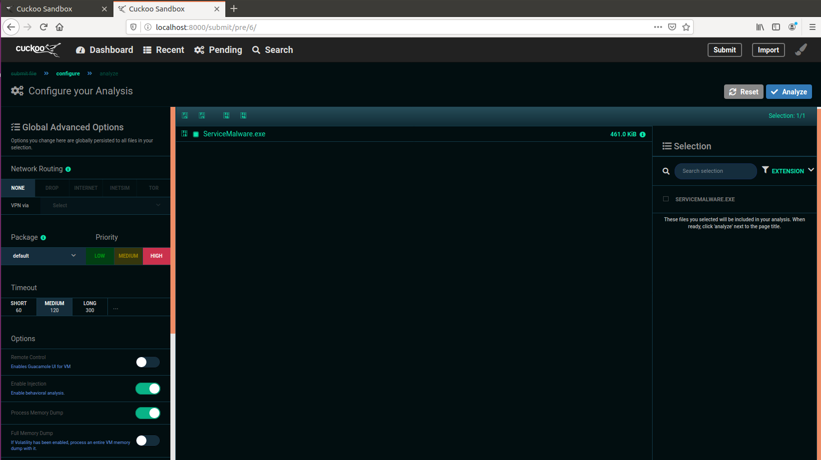 And now we have our Cuckoo VM up and running and ready for the next part, which is to submit a sample and let Cuckoo do it’s job…