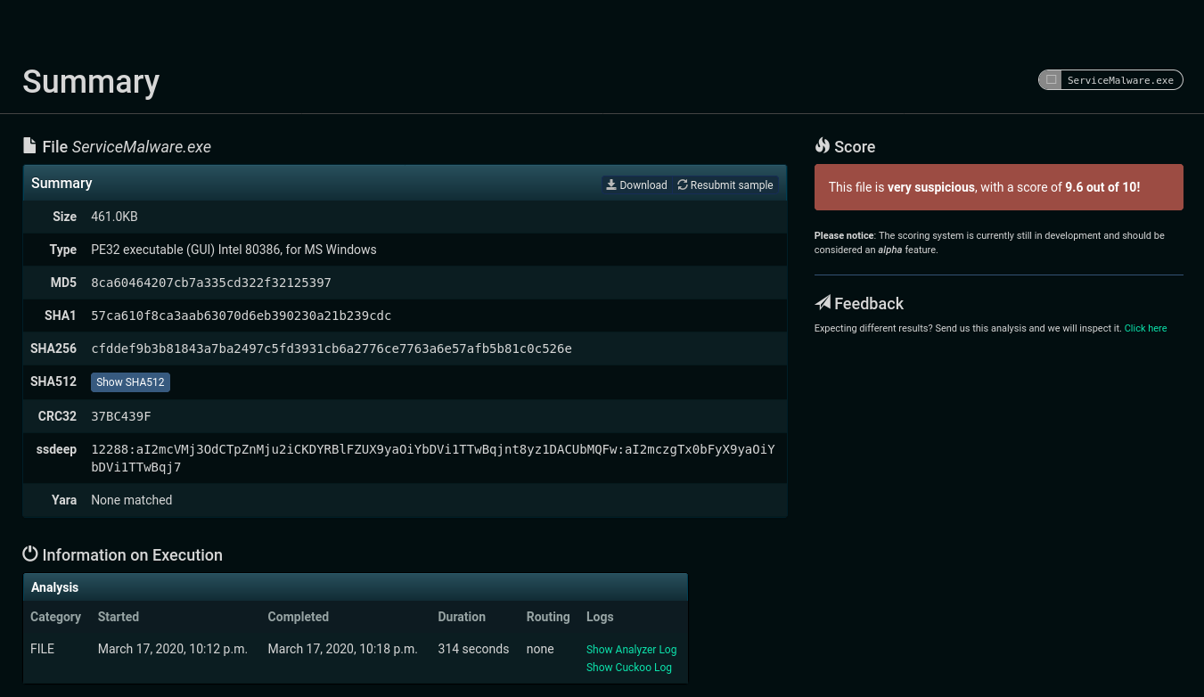 And that’s it folks, you have your Cuckoo VM up and running and you know what to do with it now. Hope it becomes useful to you and if you have any feedback, I would love to hear it.