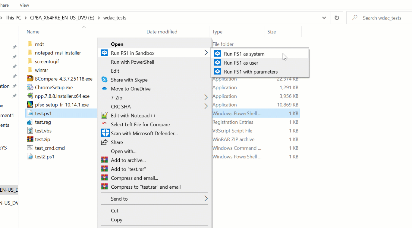 One thing about this Sandbox, is everything is ephermal, which means once you close the sandbox or power off the Sandbox, all the files, changes, applications, etc will be gone. So, in order to setup your Malware Analysis lab every single time, you’ll have to do one of two things: (1) Go through the whole setup of your applications and configurations every single time, which is so bad and time consuming (+wasting), or you (2) use .wsb scripts to automate everything!